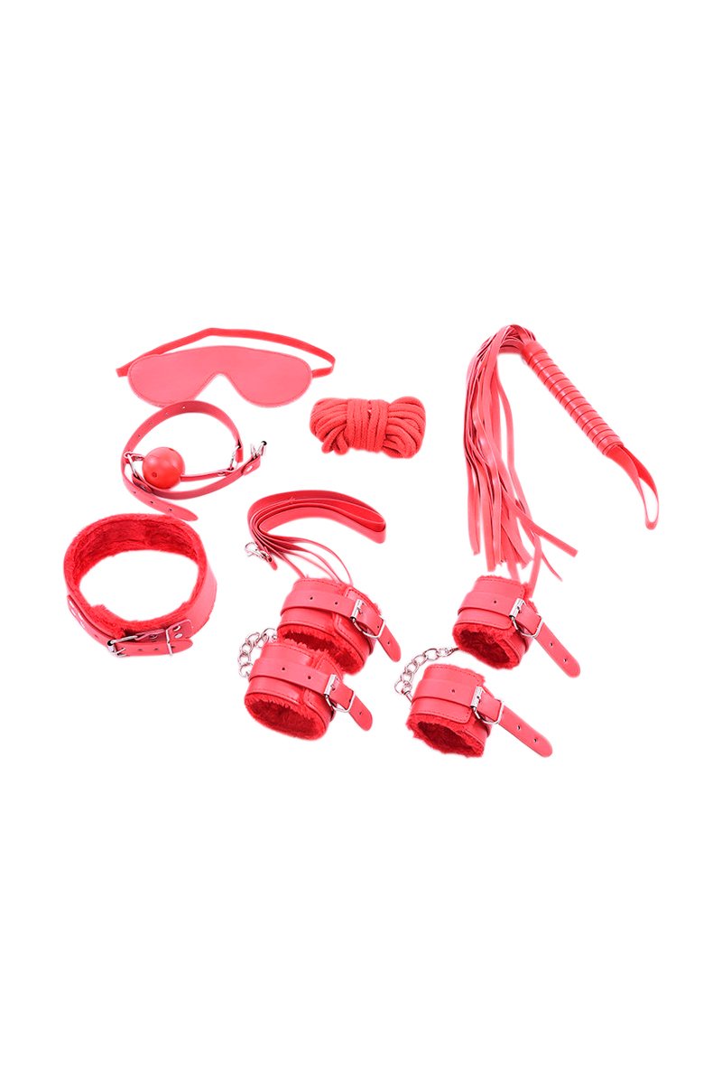 Conjunto de acessórios de bondage - Vermelho - 10 peças