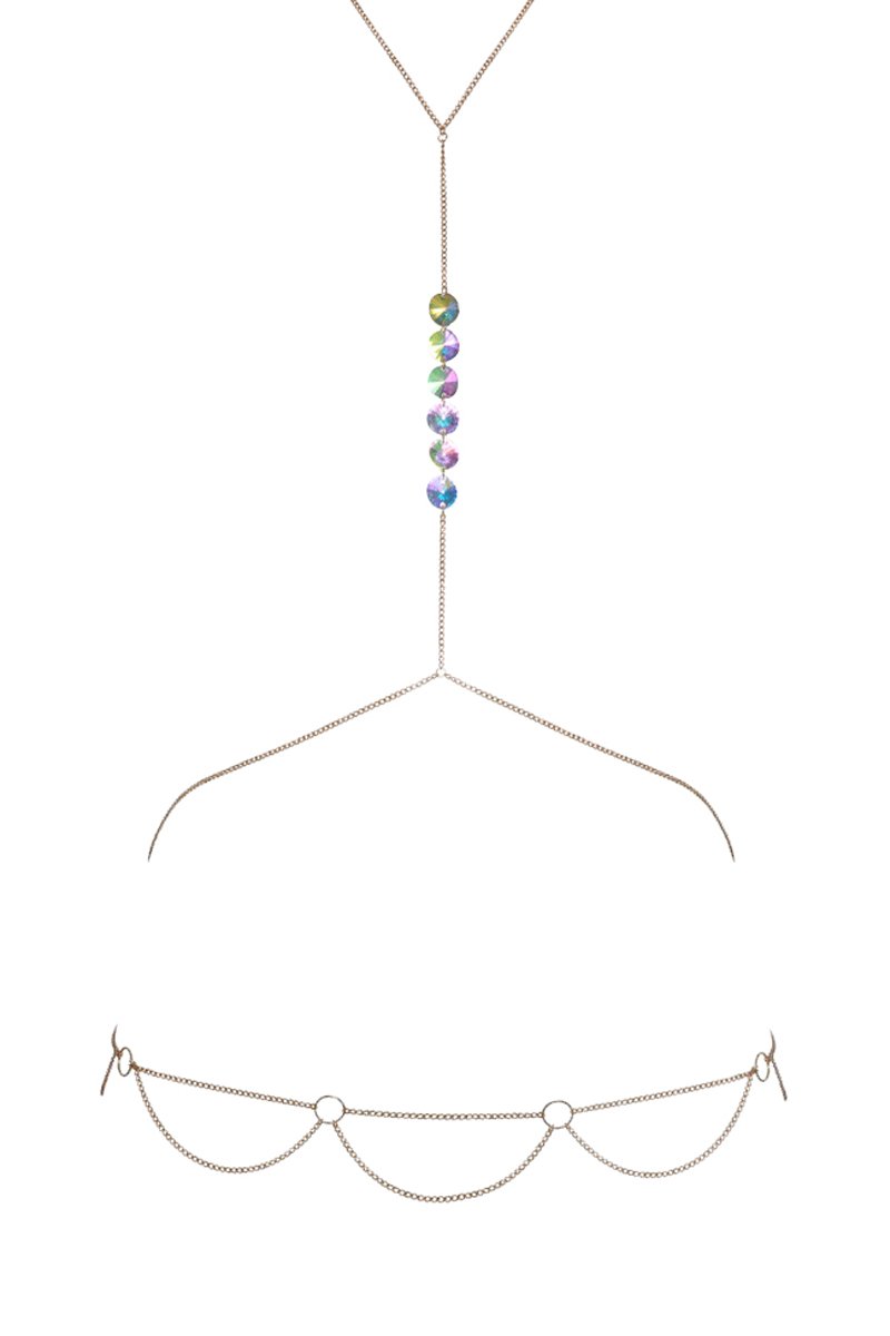 2 correntes para o corpo com purpurinas iridescentes com efeito holográfico.