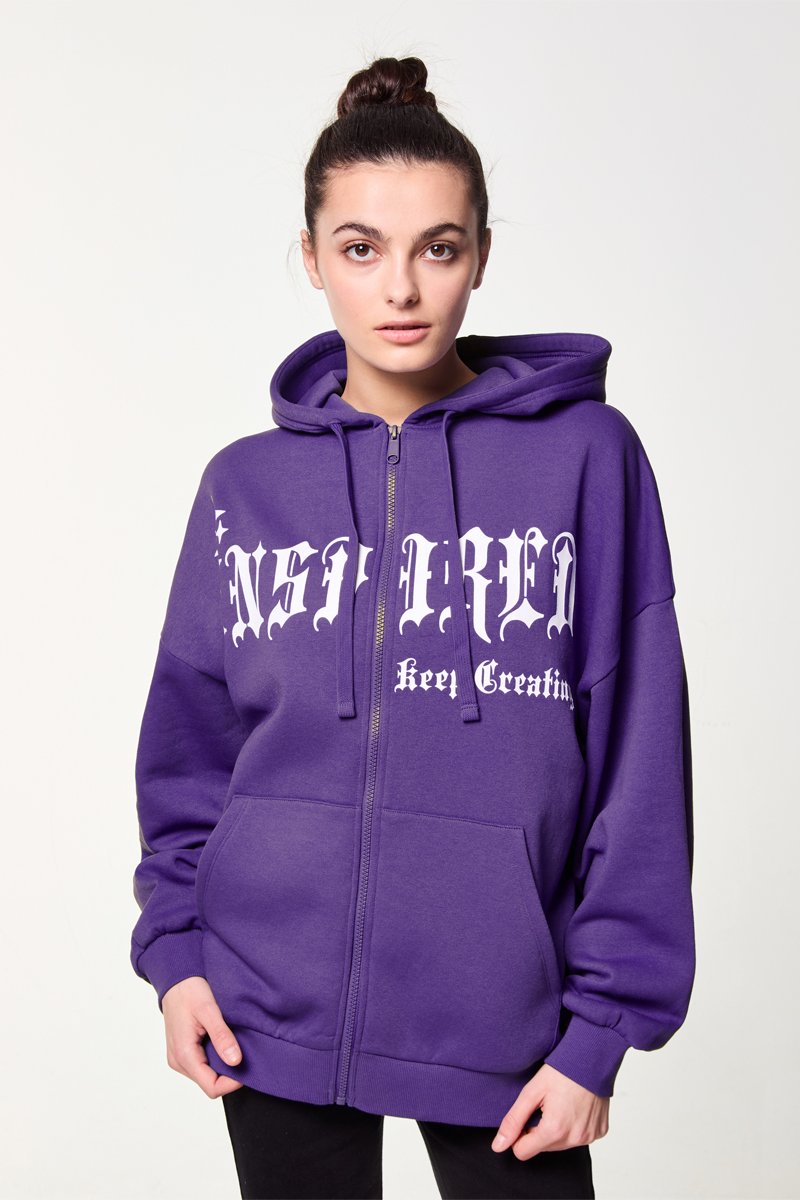 Inscrição e estampado estrelas no capuz, à frente e atrás.