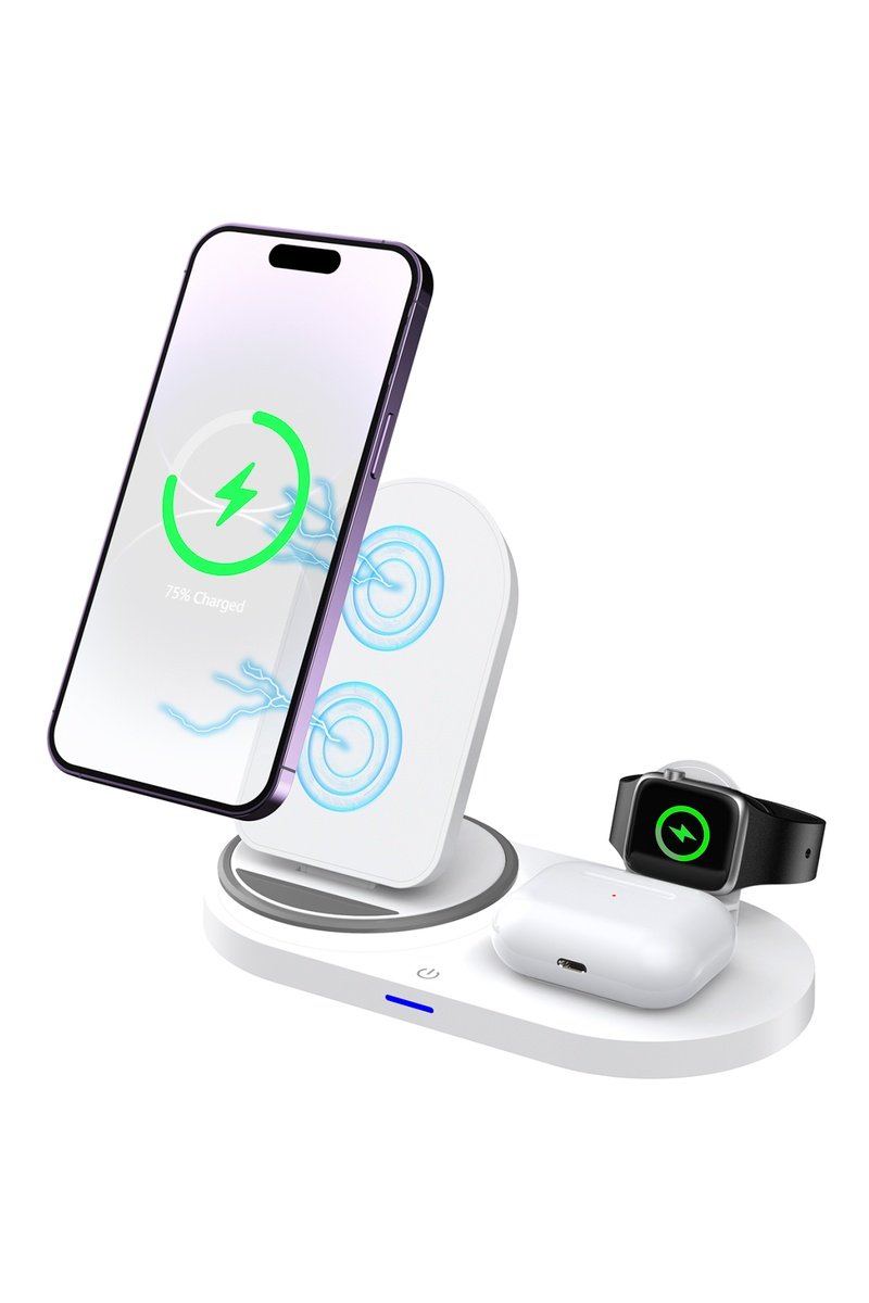 Base de carga sem fio dobrável 3 em 1 - Branco