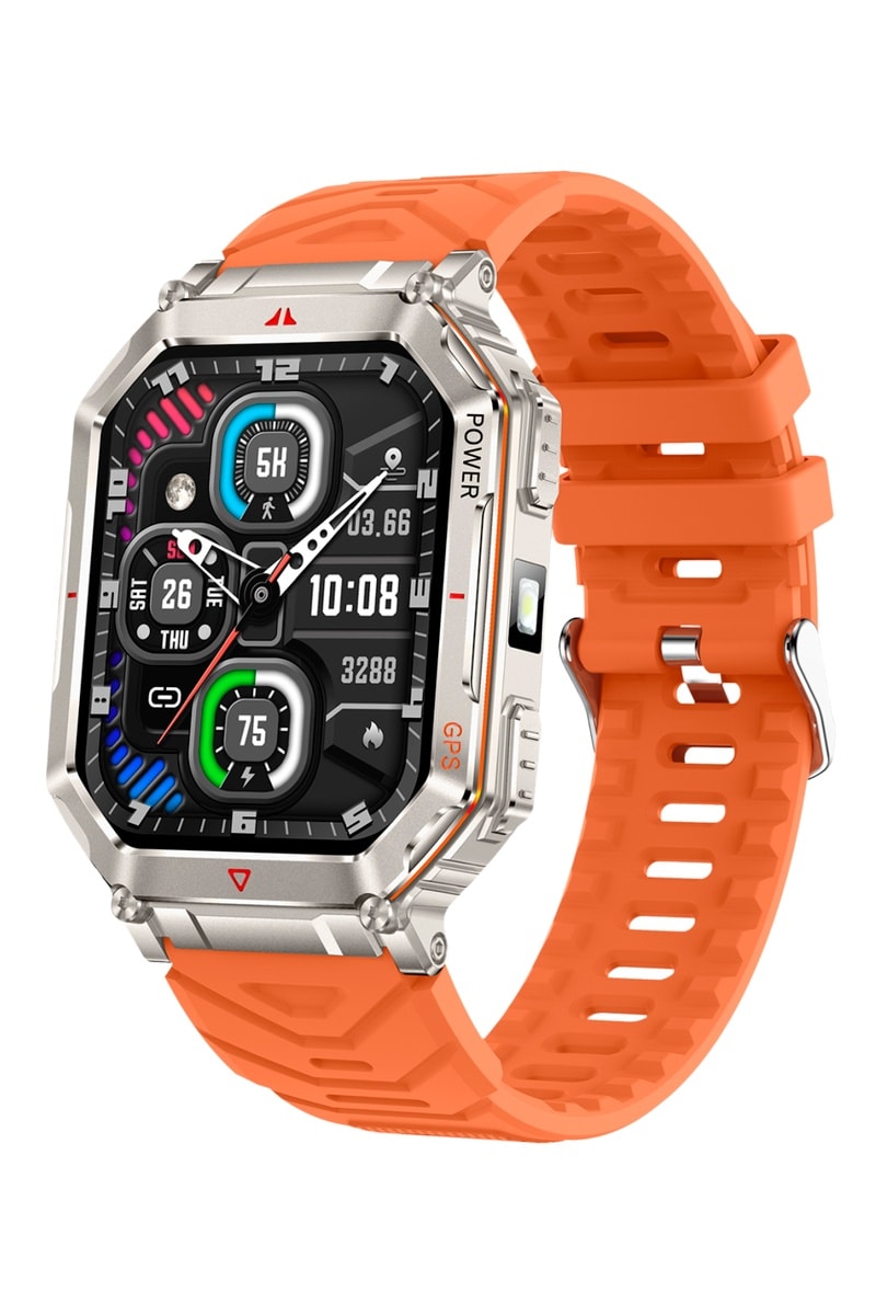 Relógio conectado KR92 - Laranja e prateado