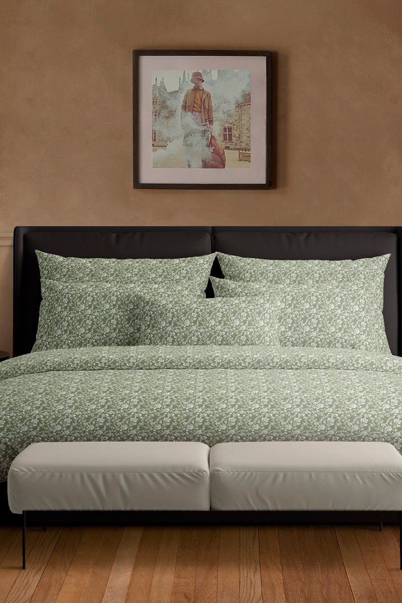 Conjunto de edredão em cetim de algodão 80 fios/cm² Fleurs - Verde
