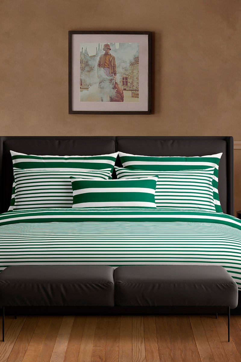 Conjunto de edredão em cetim de algodão 80 fios/cm² Horizonte - Verde e branco