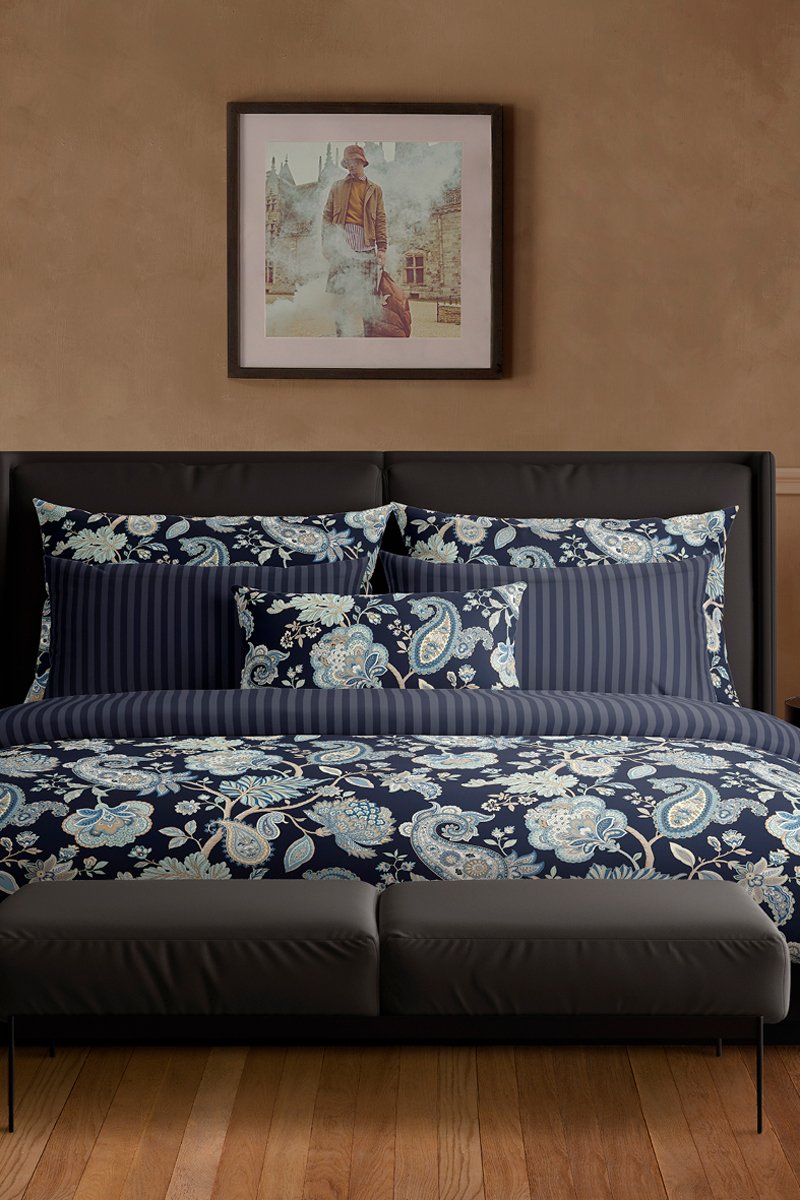 Conjunto de edredão em cetim de algodão 80 fios/cm² Nuit indienne - Azul-escuro