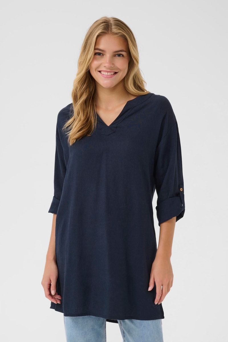 Túnica em linho - Azul-marinho