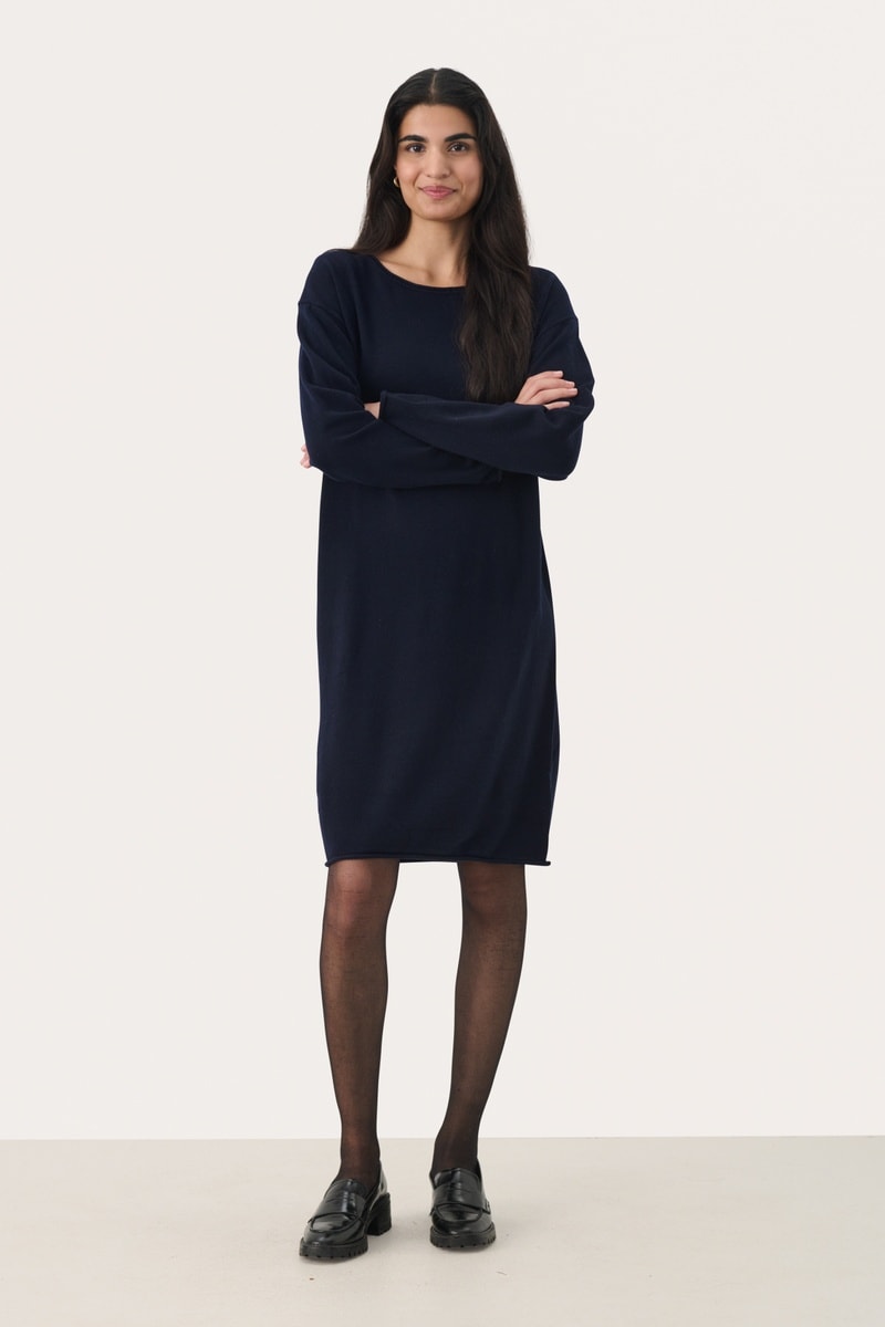 Vestido-camisola em lã - Azul-marinho