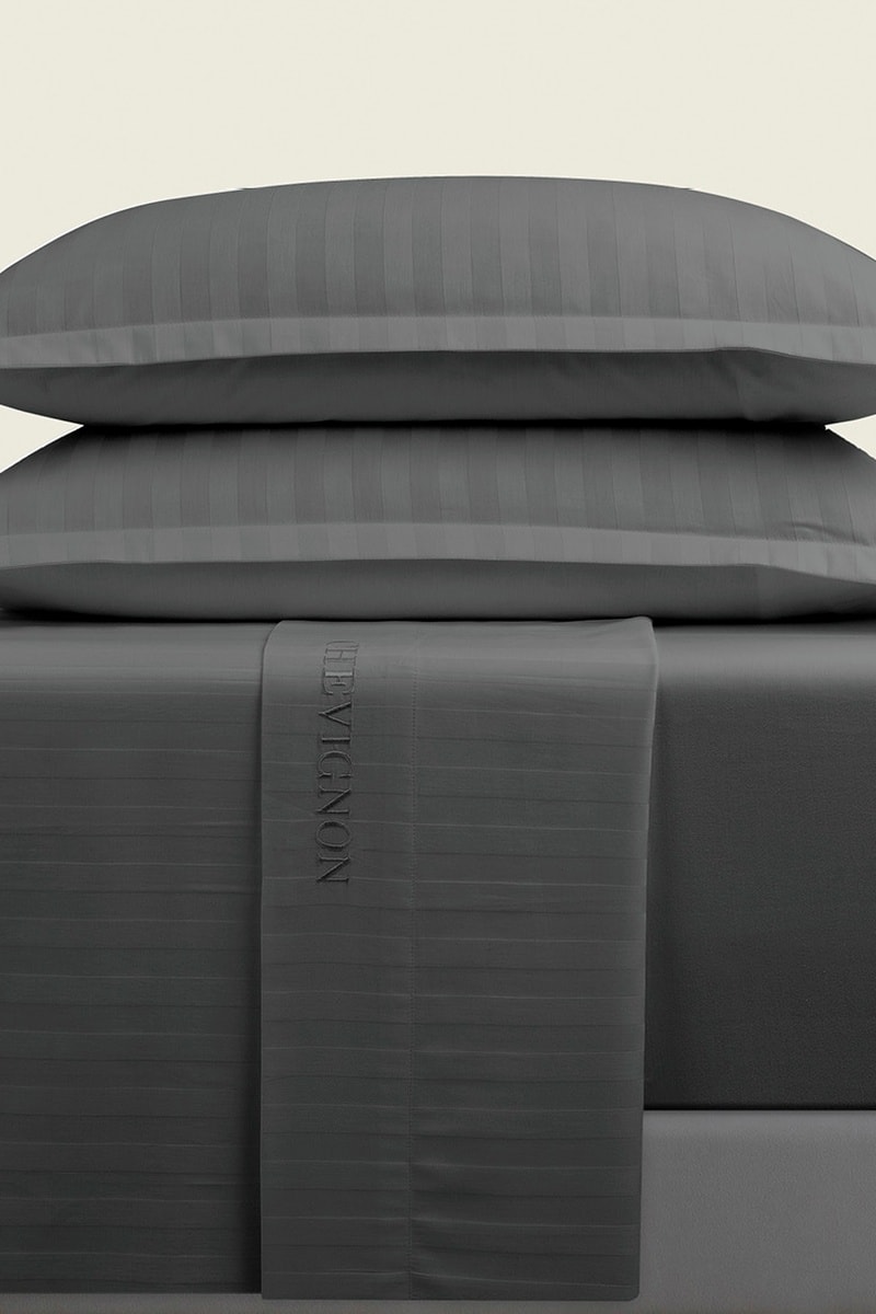 Lençol liso em cetim de algodão 80 fios/cm² Dobby - Cinzento-escuro