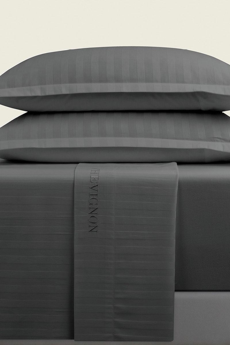 Conjunto de lençóis em cetim de algodão 80 fios/cm² Dobby - Cinzento-escuro
