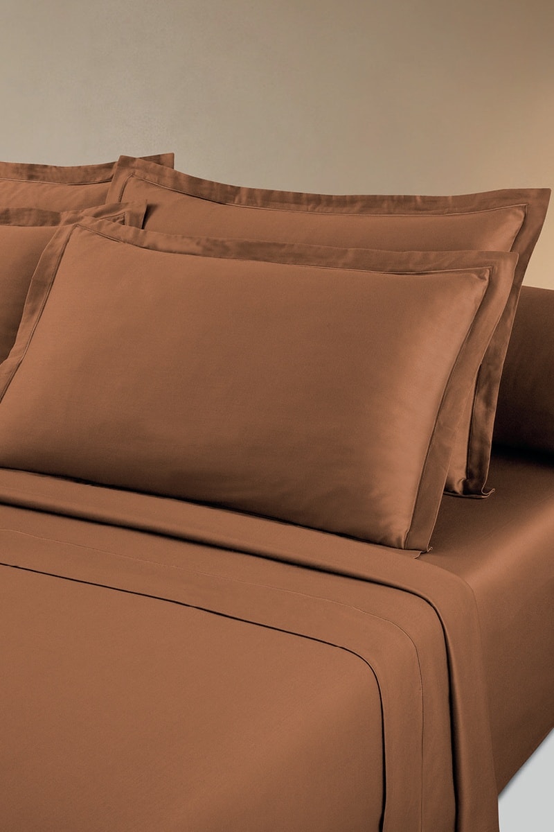 Conjunto de lençóis em cetim de algodão 80 fios/cm² Uni - Castanho