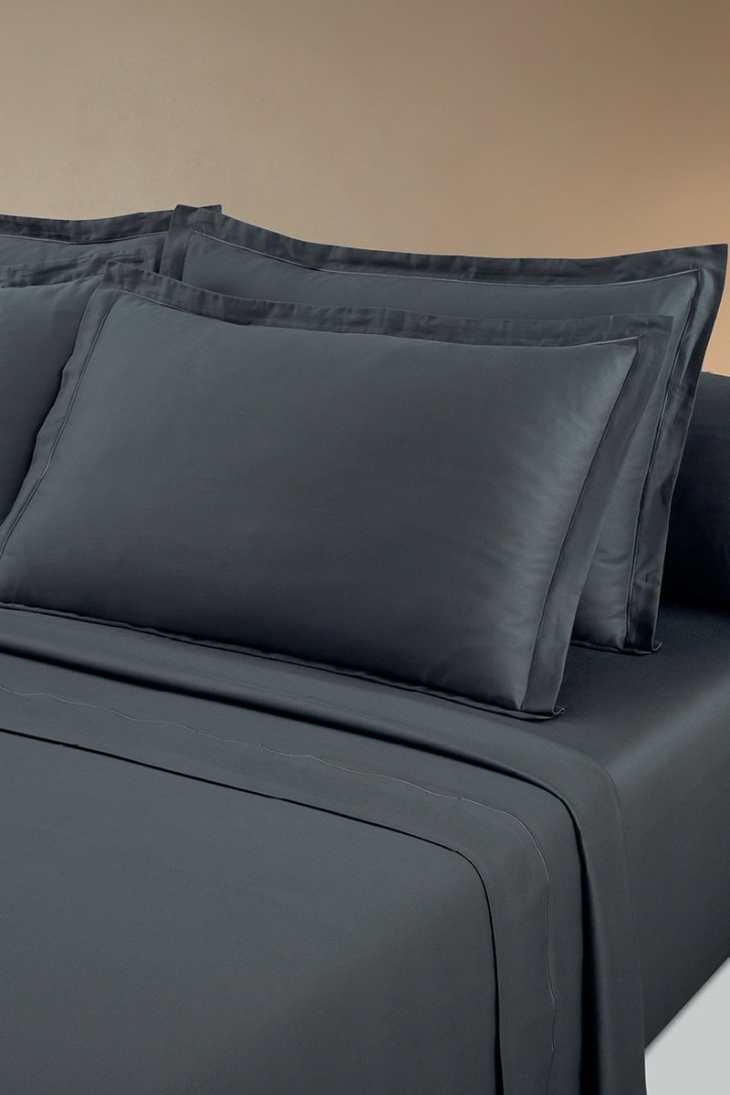 Conjunto de lençóis em cetim de algodão 80 fios/cm² Uni - Cinzento-escuro