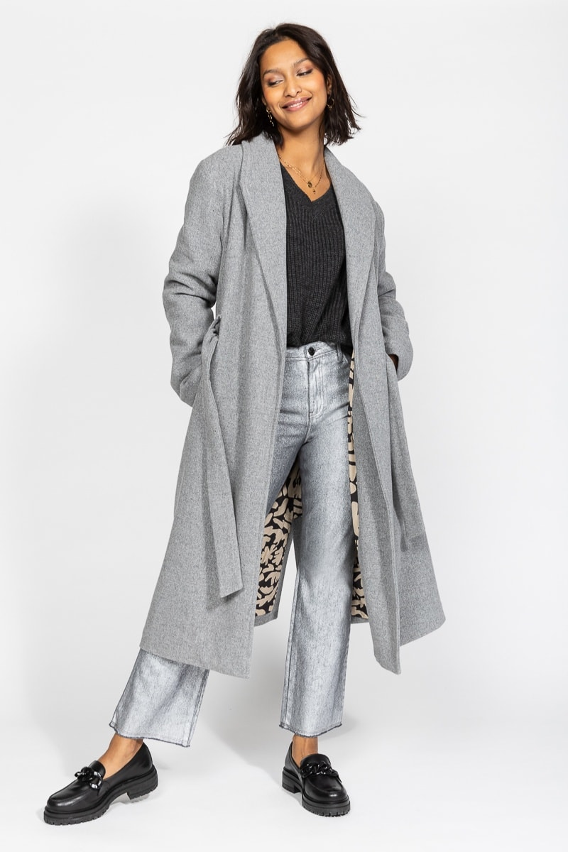 Casaco comprido em misturada.