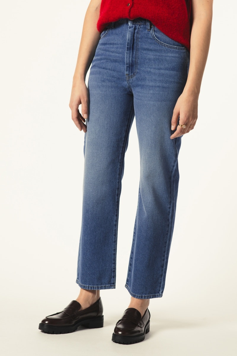 Calças de ganga direitas 7/8 cintura alta - Azul