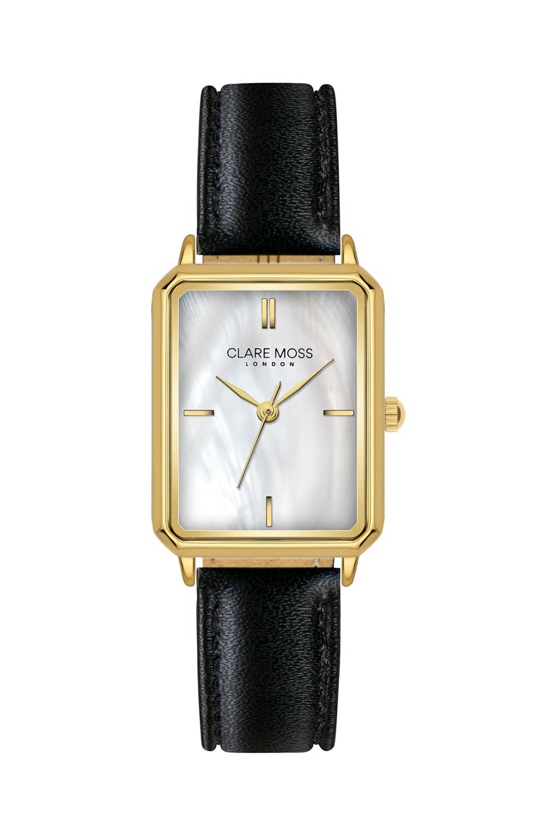 Relógio de quartzo em couro e madrepérola Champagne - Preto e dourado