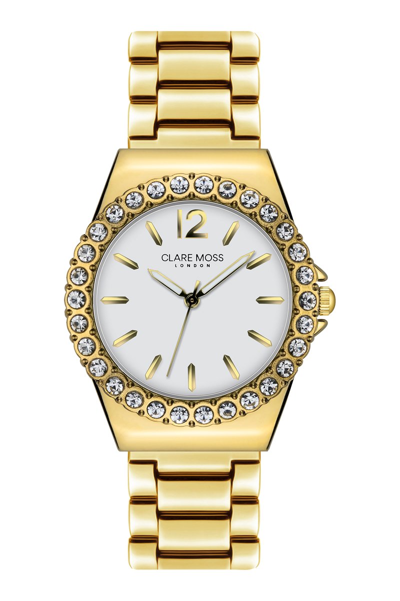 Relógio de quartzo em aço e zircões Classic - Dourado e branco