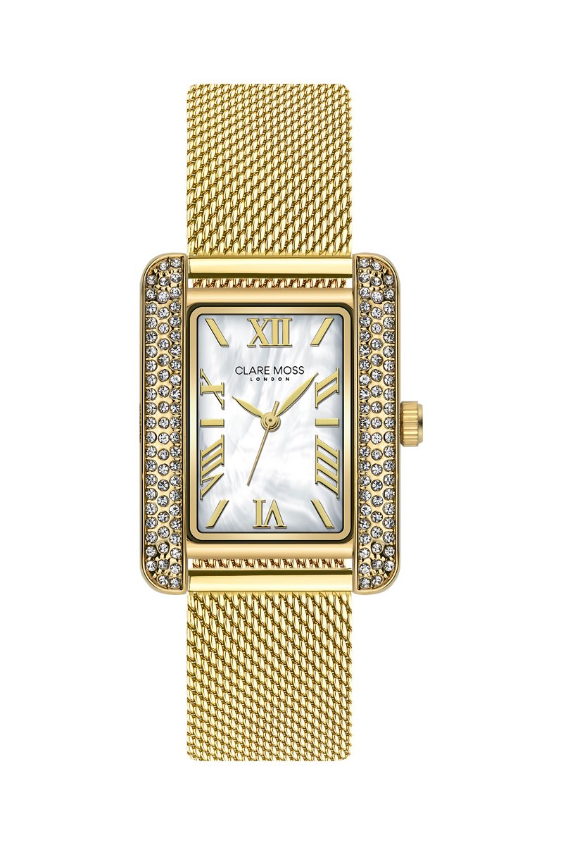 Relógio de quartzo em aço, madrepérola e zircões Jesse