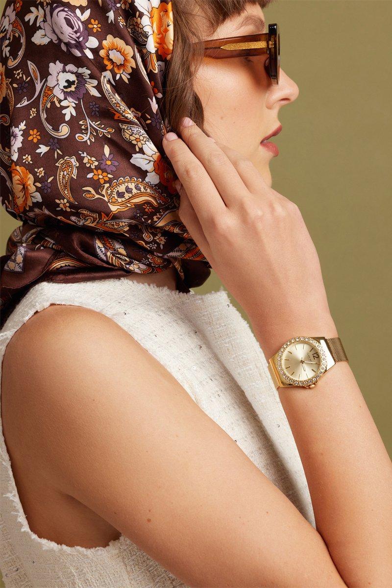 Relógio de quartzo em aço e zircões Kensington - Dourado
