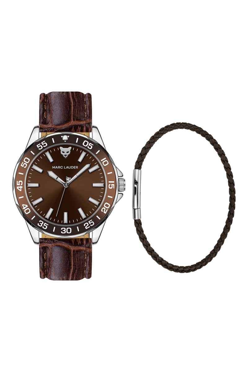 Coffret relógio de quartzo em couro e pulseira de couro Ljublijana