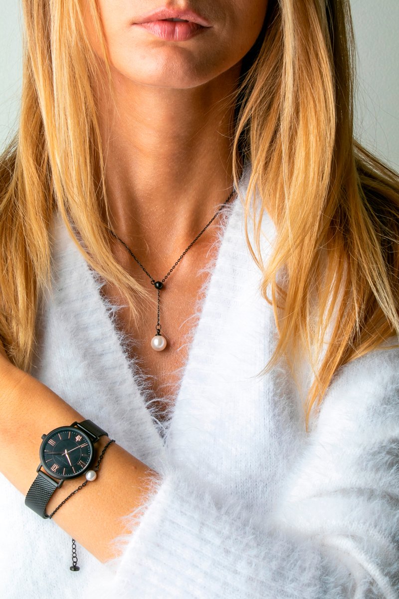 Composição: aço inoxidável folheado a ião e pérola de imitação