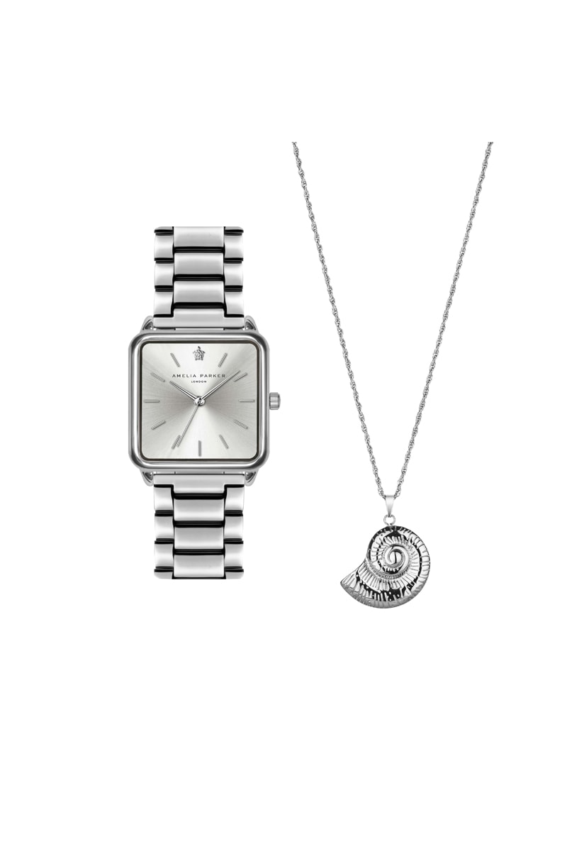 Coffret relógio de quartzo e colar Plaza