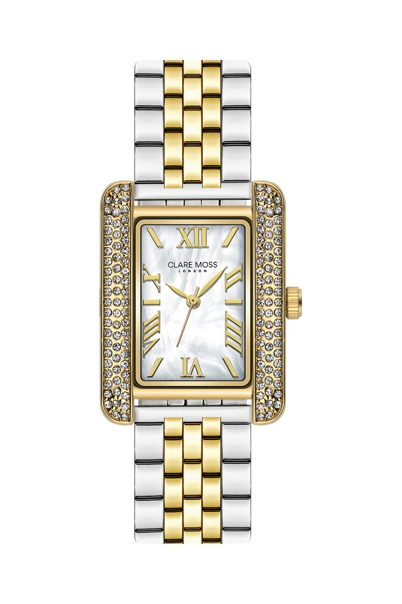Relógio de quartzo em aço, madrepérola e zircões Jesse