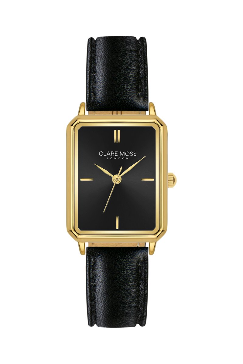 Relógio de quartzo em couro de vitelo Carlie - Preto e dourado