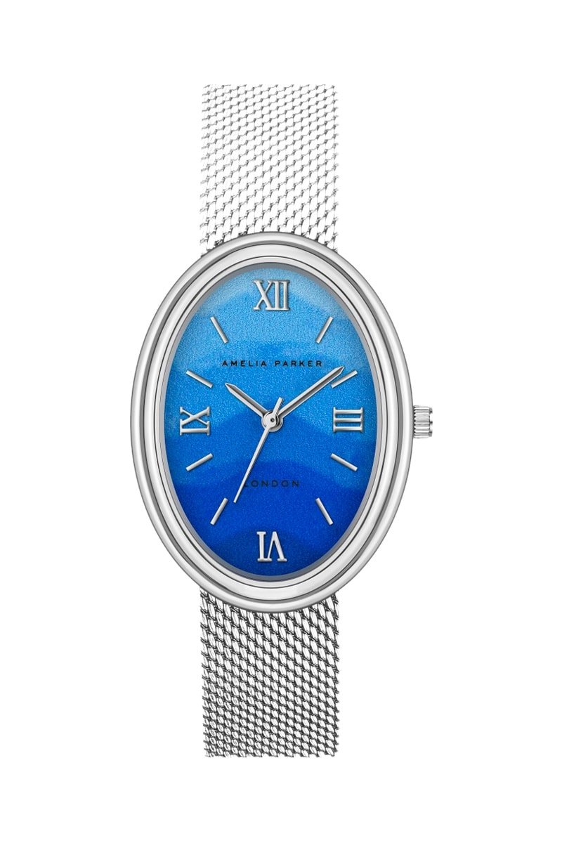 Relógio de quartzo em aço Shell Bay - Prateado e azul