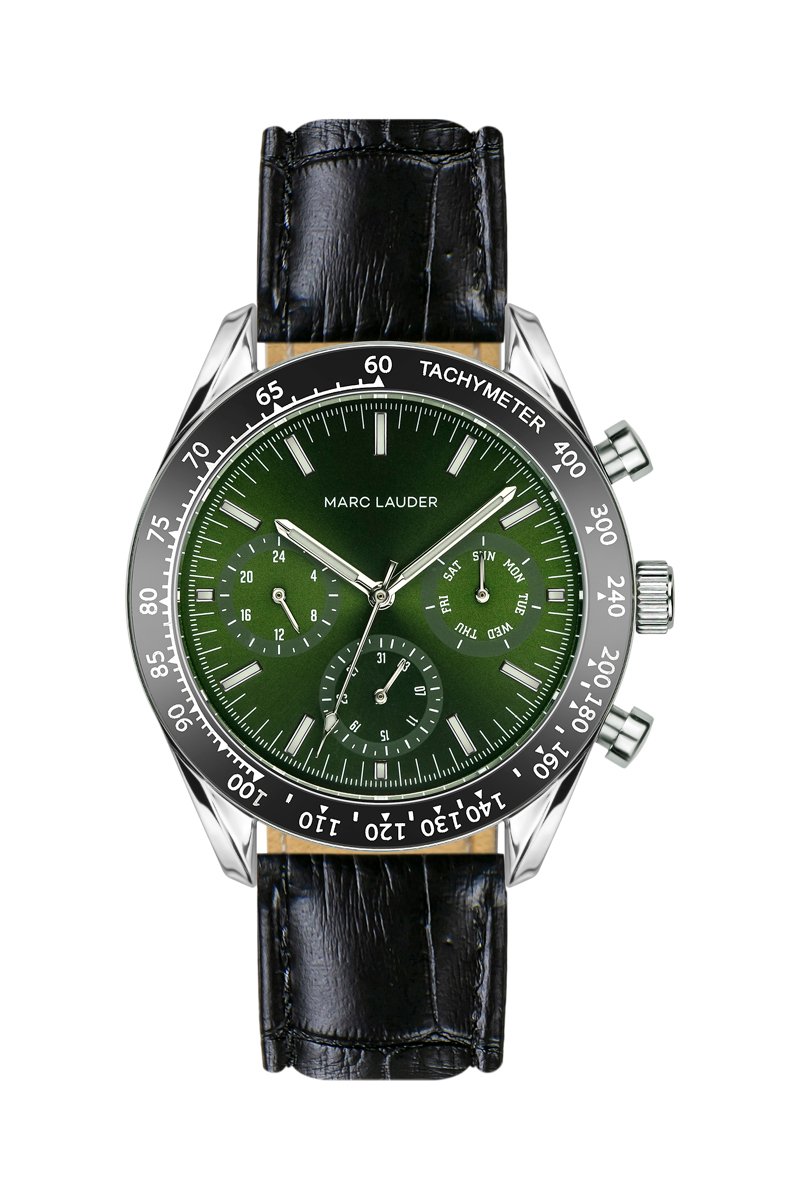 Relógio de quartzo em couro Lisbon - Taquímetro - Preto e verde