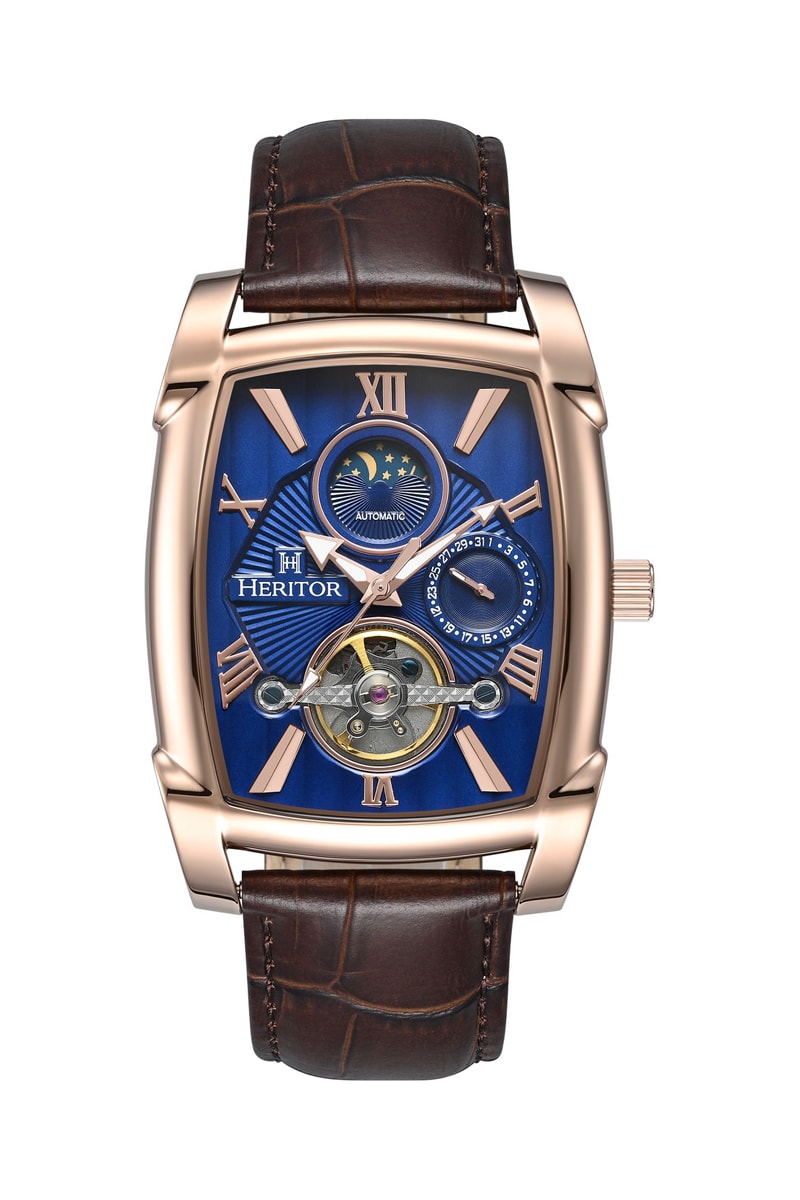 Relógio turbilhão automático de couro Valentin - Castanho e dourado