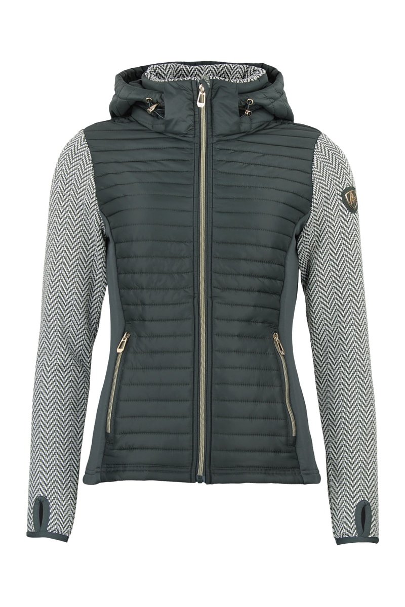 Mangas compridas com abertura para o polegar com estampado chevrons 1 das quais com logótipo metálico.