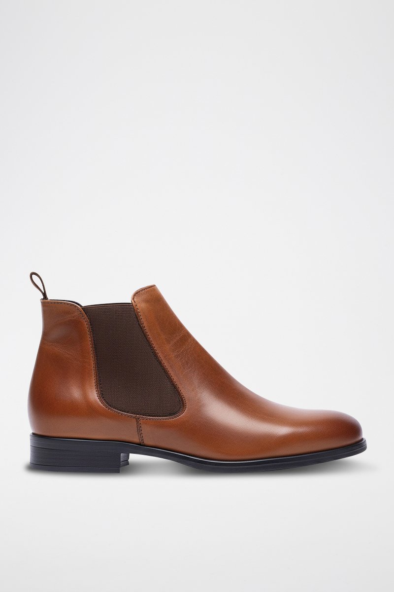 Botins Chelsea em raspa de couro - Castanho