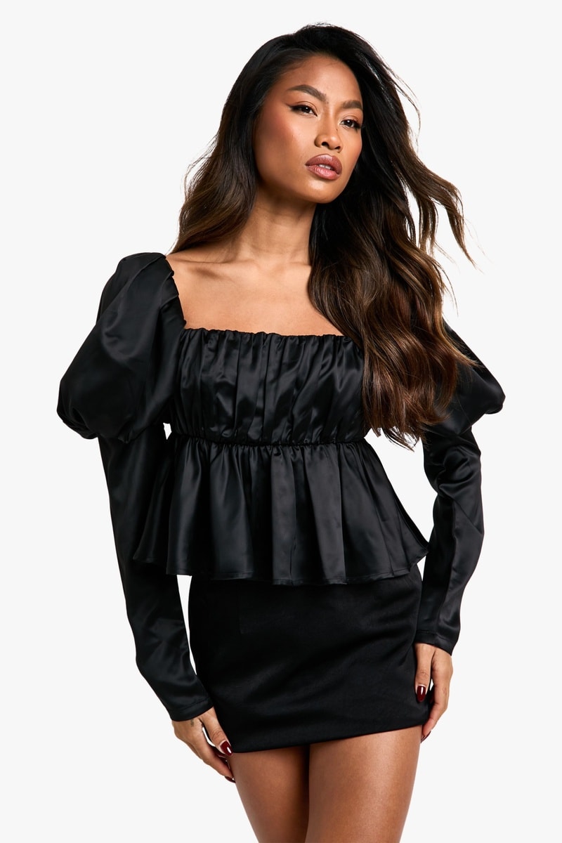 Top de mangas compridas volumosas.