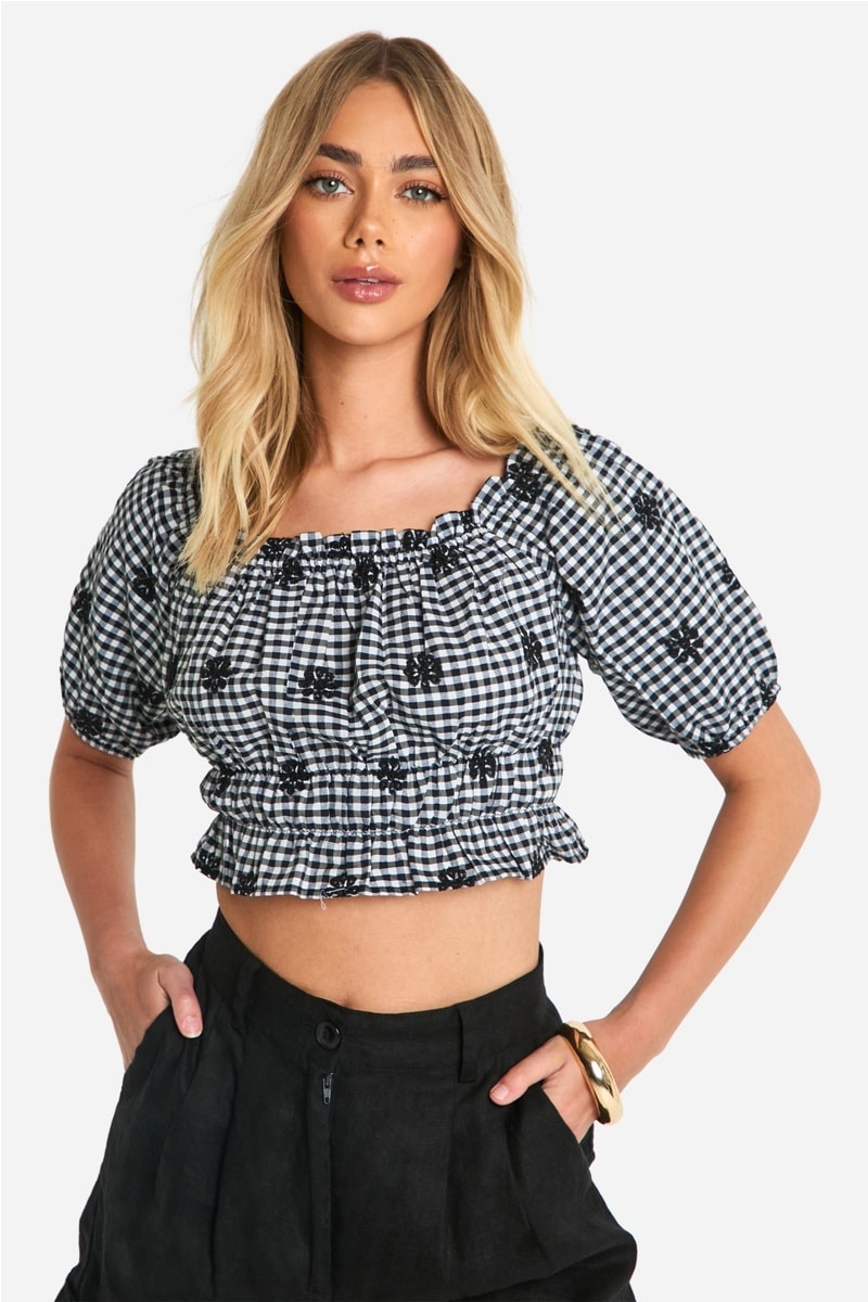 Crop top de mangas curtas.