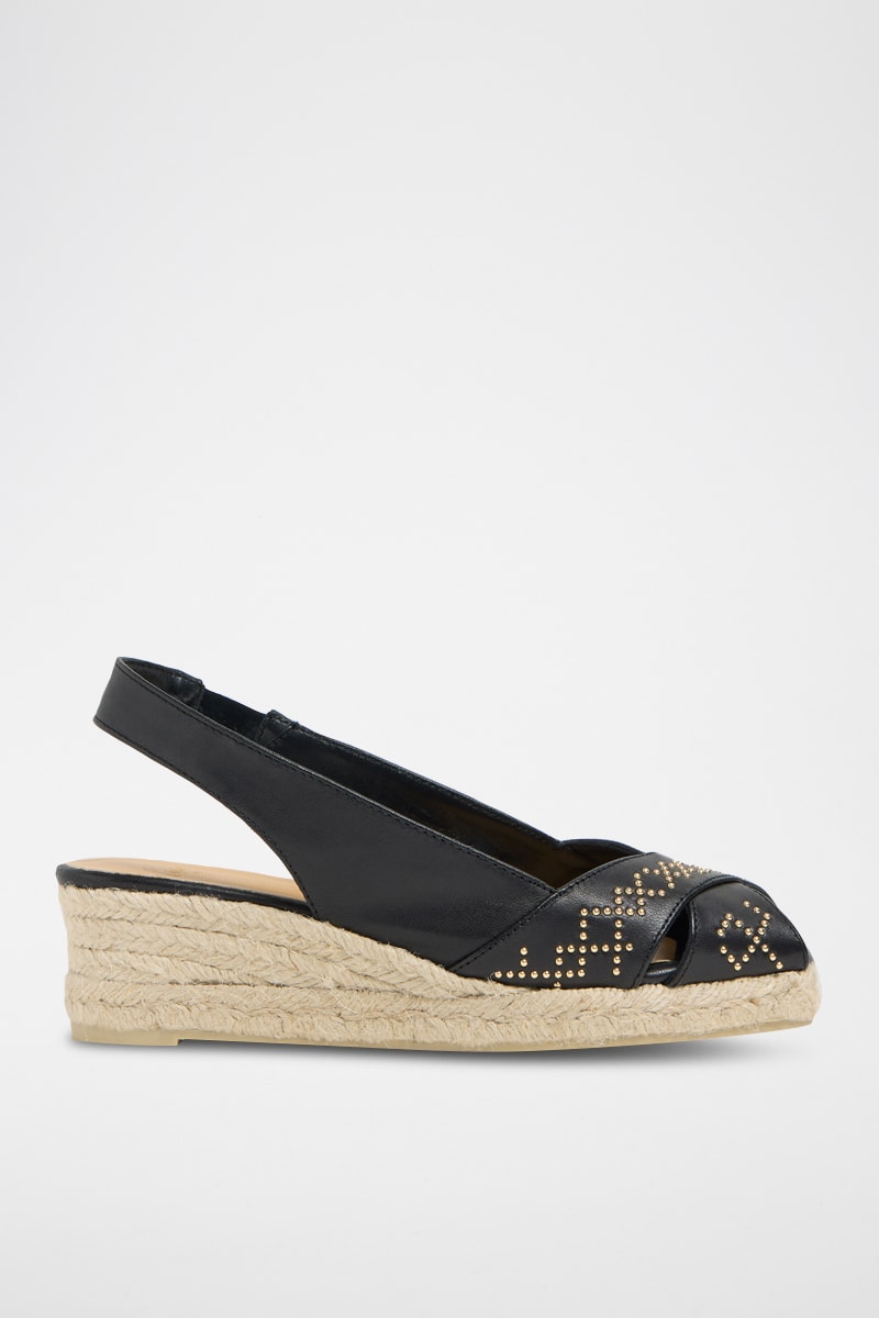 Alpargatas com cunha em couro.