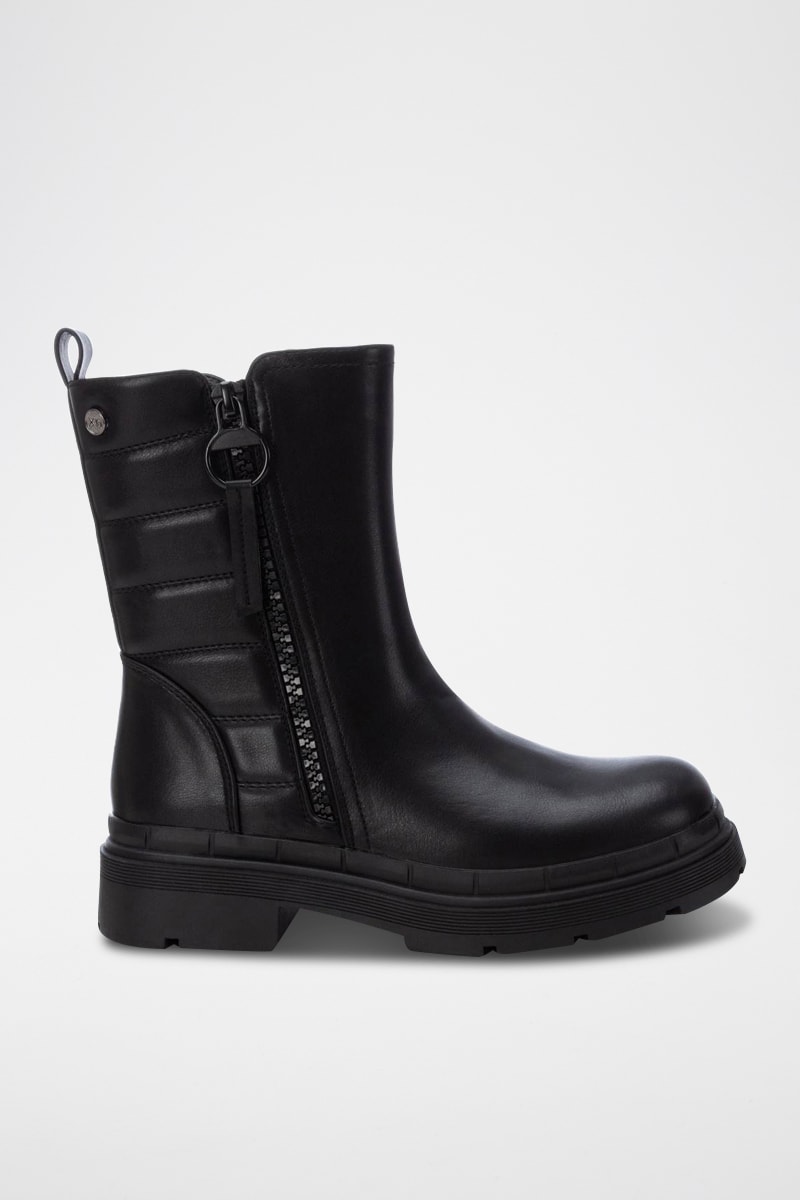 Fecho zip e aplicação em metal com logótipo do lado exterior.