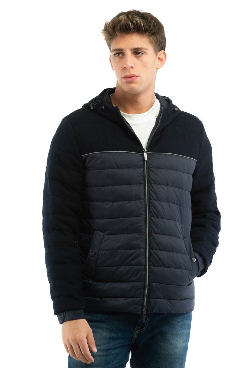 Blusão com capuz com atilhos de ajuste e travões de cordão.