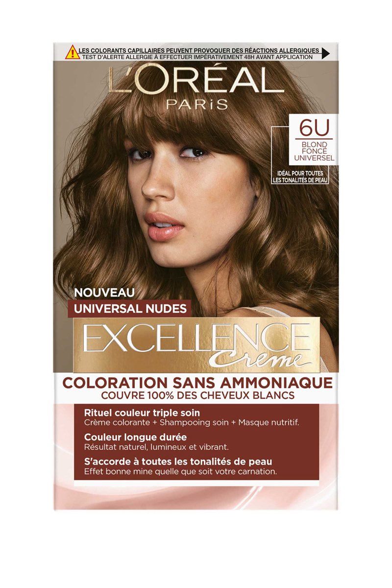 Coloração permanente Excellence Creme Universal Nudes - 6U Blond foncé universel - Cabelos normais