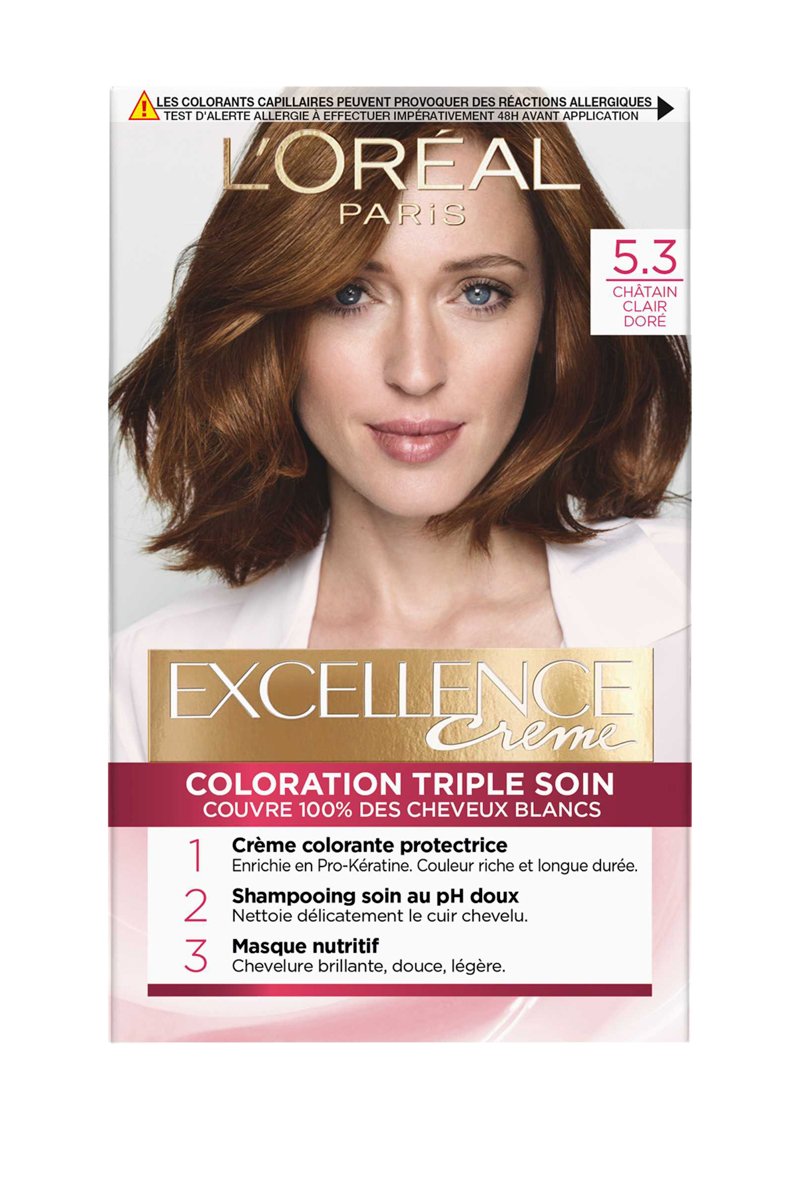 Coloração permanente Triple Soin Excellence Creme - 5.3 Châtain clair doré - Cabelos normais