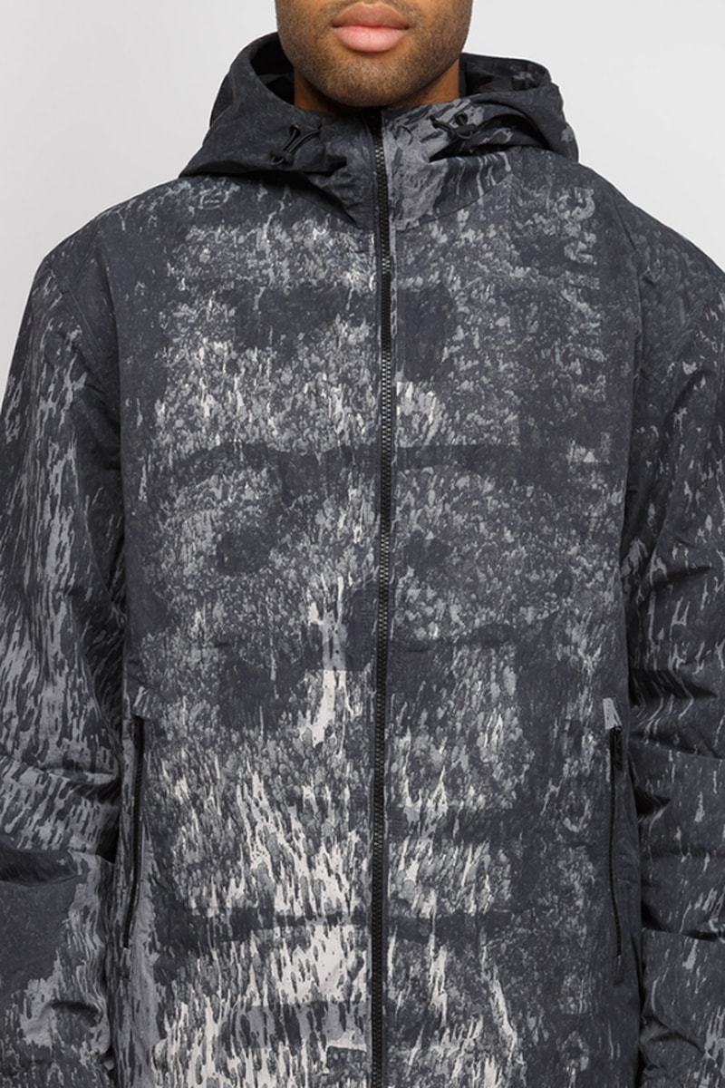 Atilhos de ajuste com travões de cordão no capuz e na base.