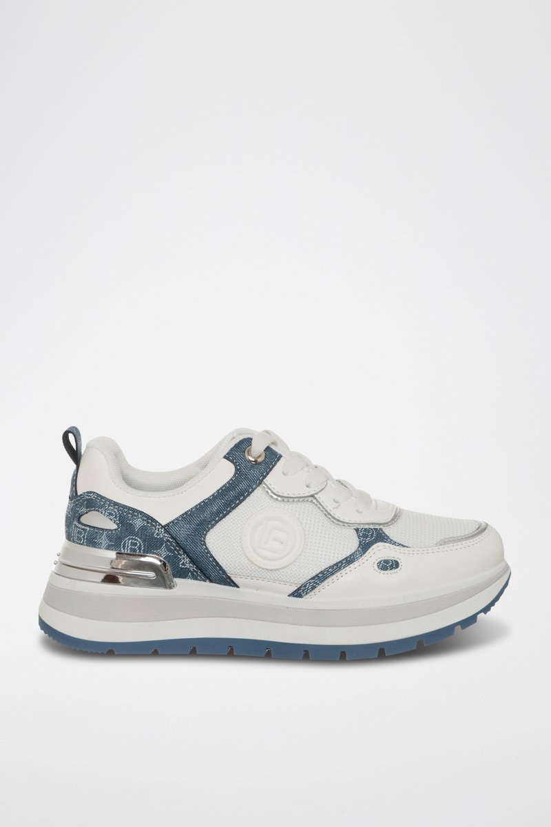 Sapatilhas com plataforma - Branco e azul-petróleo - Laura Biagiotti