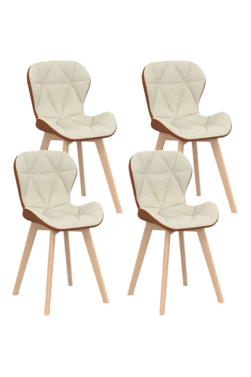Cadeiras Gladys em tecido bege e camel e pés de madeira - conjunto de 4