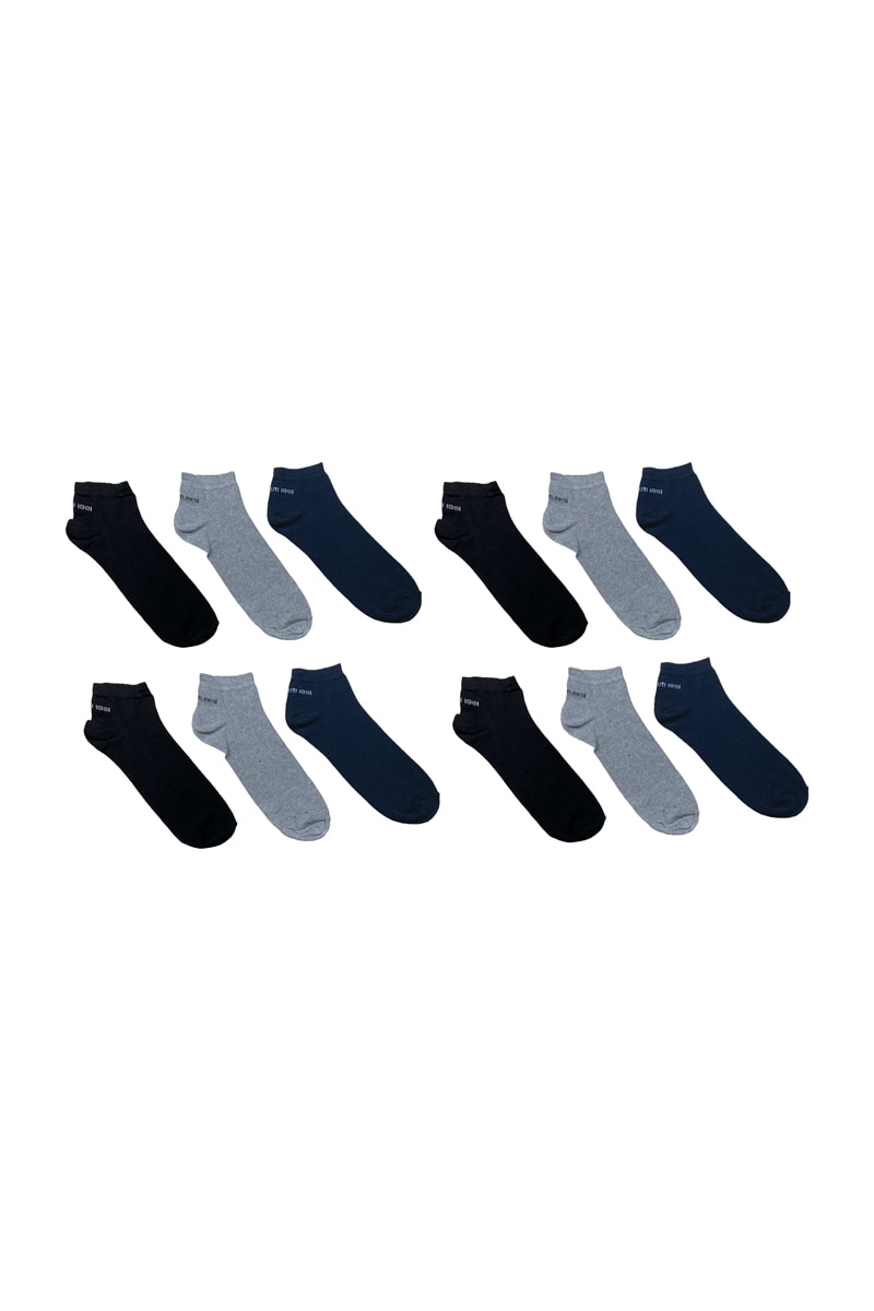 12 pares de meias - Preto, azul-marinho e cinzento mesclado