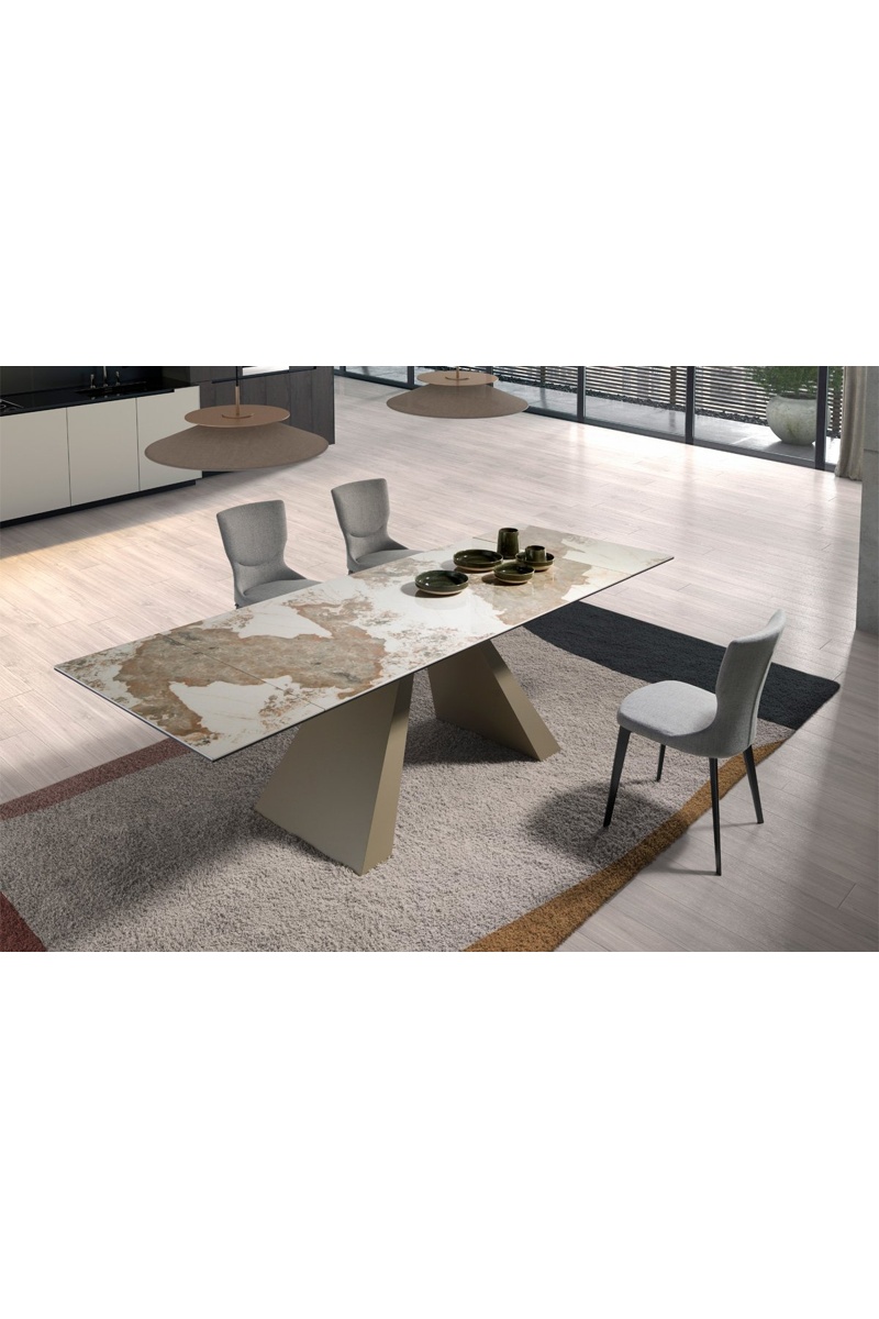 Mesa de refeição extensível - Castanho e bege