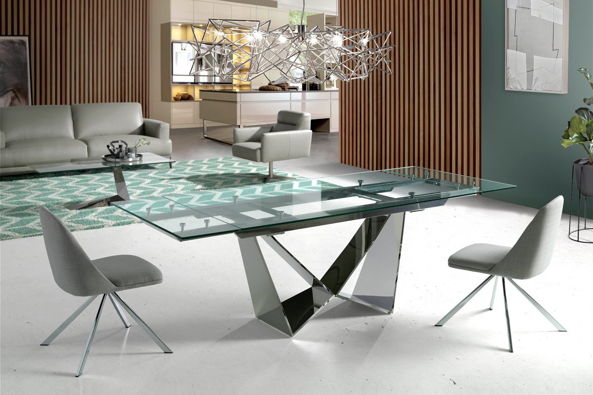 Mesa de refeição extensível - Transparente e cromado