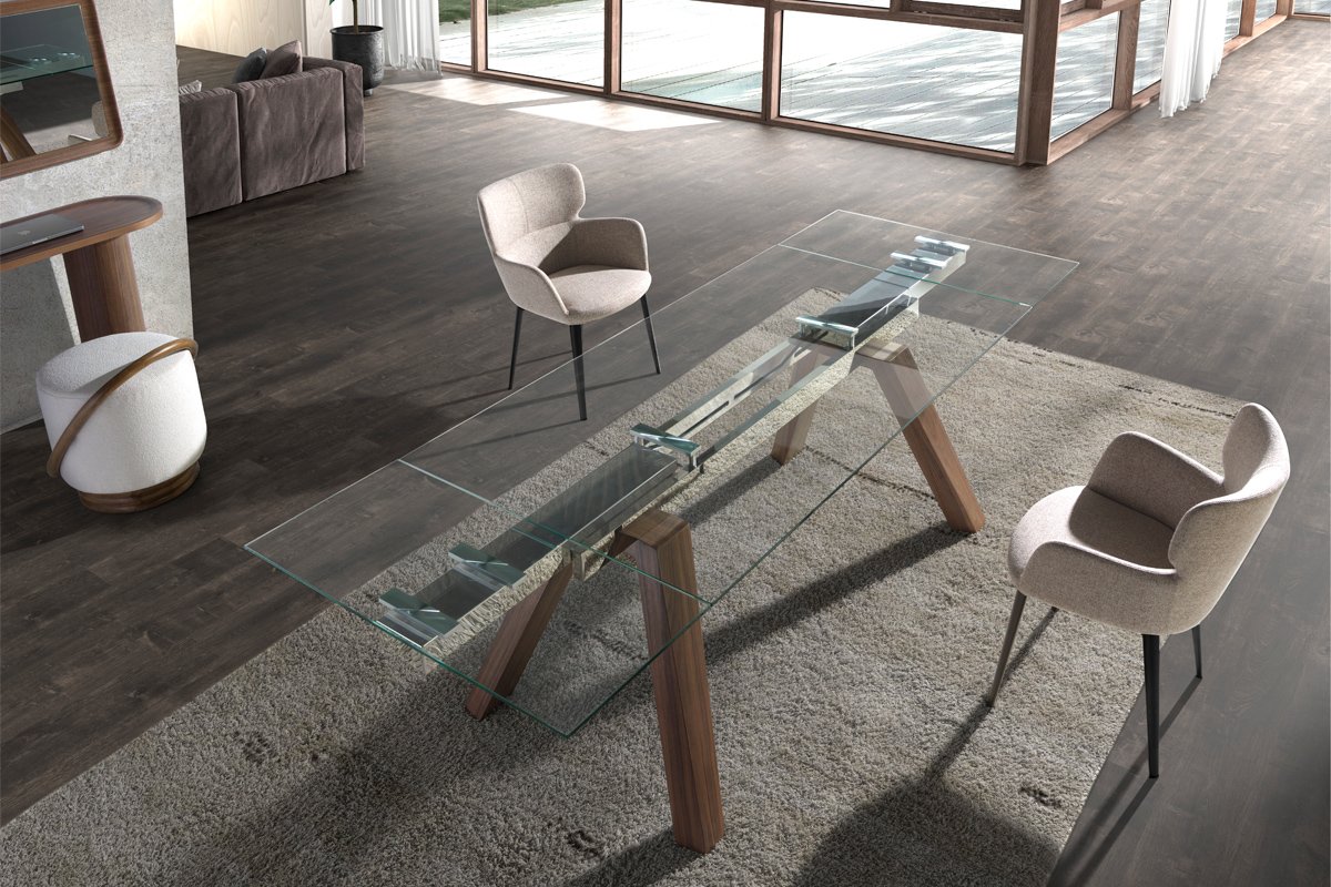 Mesa de refeição extensível - Transparente e natural