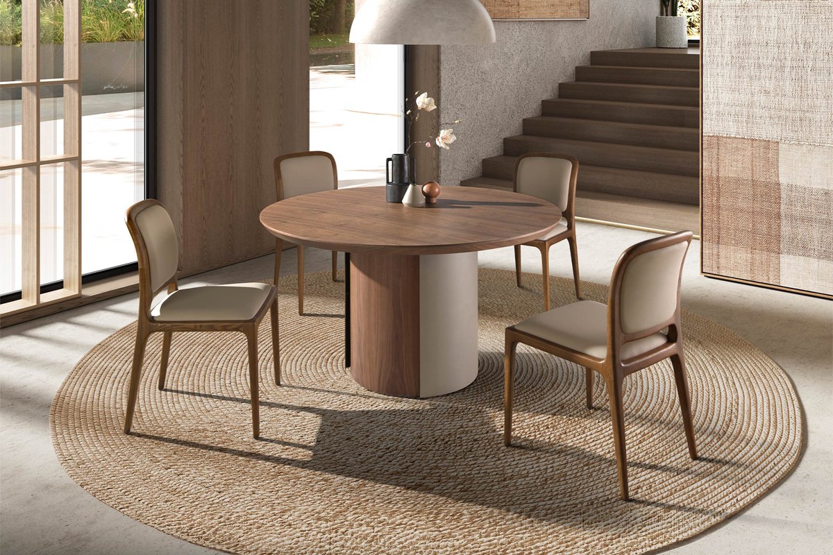 Mesa de refeição em madeira de nogueira - 140 x 140 x 76 cm