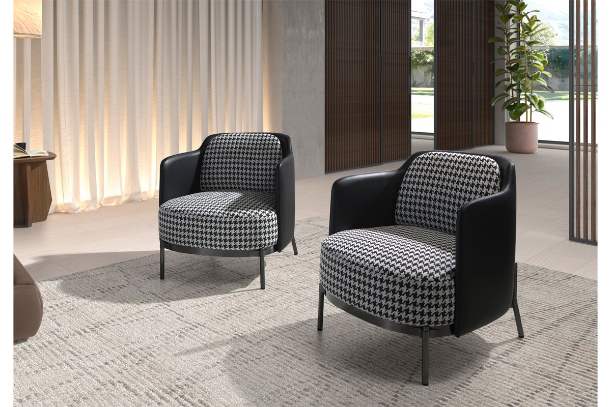 Cadeirão - Preto e branco - Revestimento em imitação de couro e poliéster