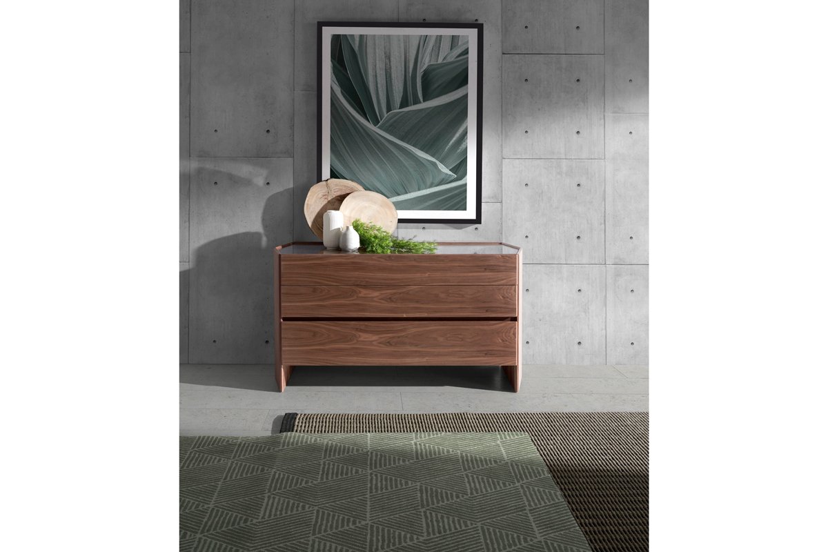 Cómoda 3 gavetas - Imitação nogueira e transparente