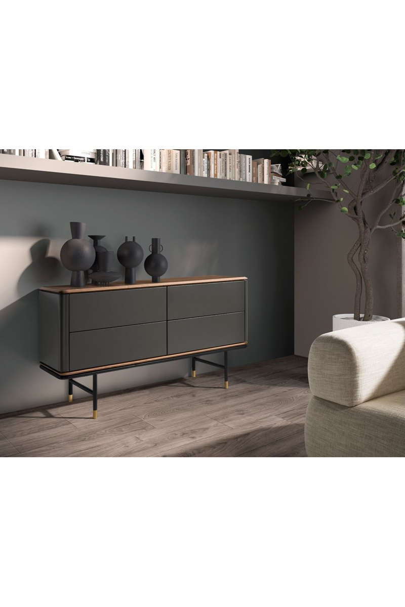 Aparador de 4 gavetas - Imitação de nogueira e ardósia