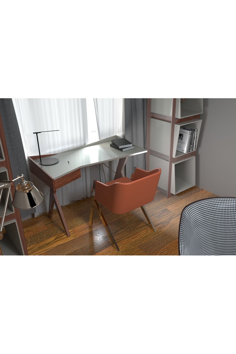 Secretária 1 gaveta - Imitação de nogueira e branco