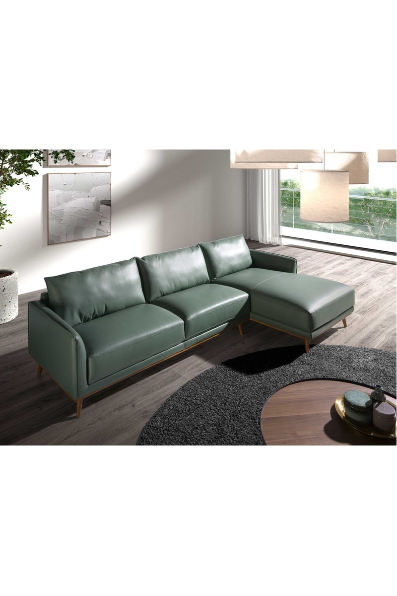 Sofá de canto direito - Verde-escuro - 5 lugares - Em couro
